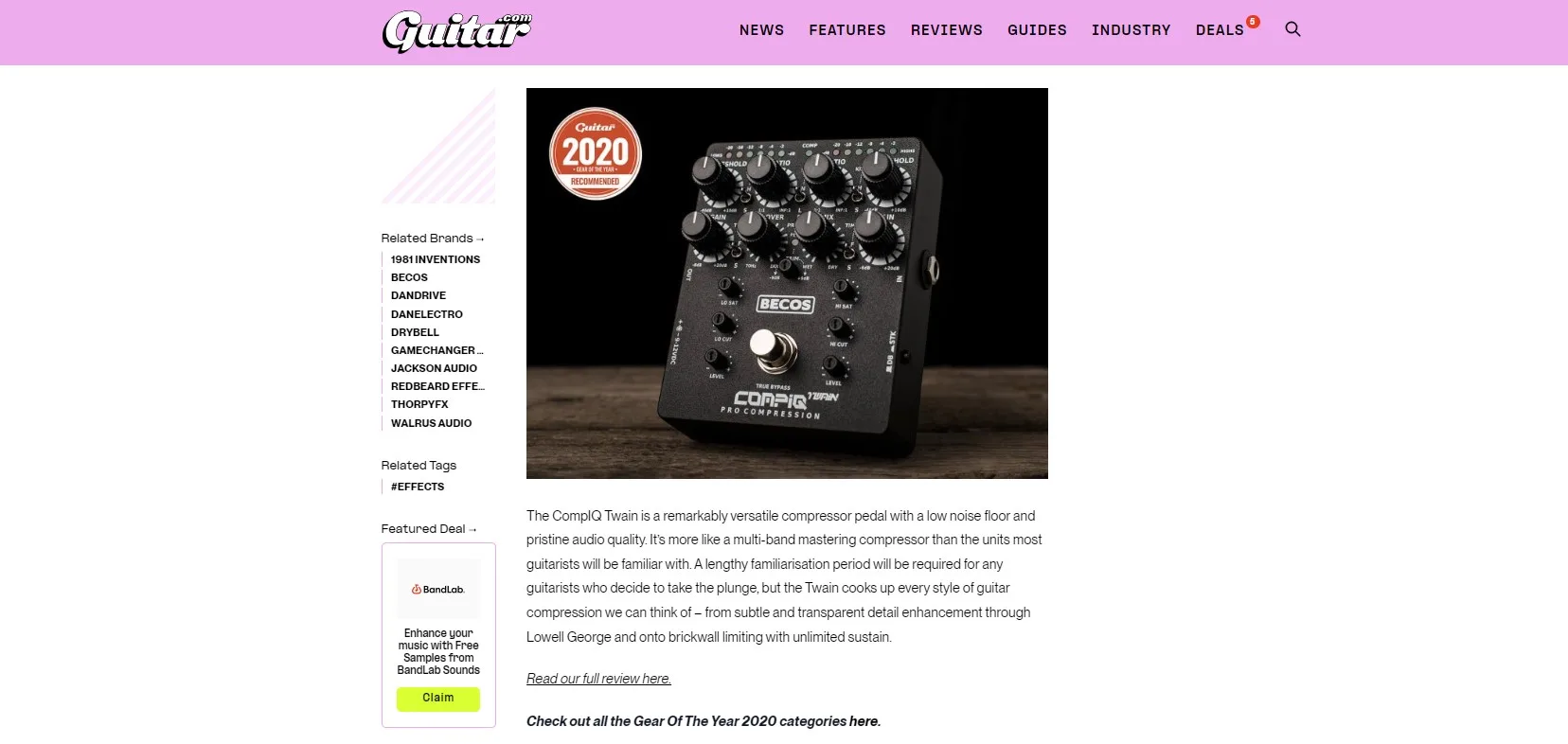 CompIQ TWAIN nominated for Best Guitar Effects of the Year 2020 by Guitar Magazine