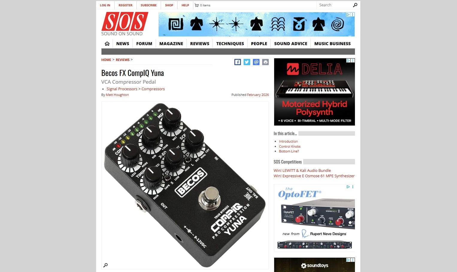 The new CompIQ YUNA Pro Compressor has been reviewed in the February 2026 by Sound On Sound Magazine. As one of the most trusted magazines among studio professionals and artists worldwide, we’re incredibly proud and honored to have YUNA featured. Here are some of Matt Houghton’s findings.